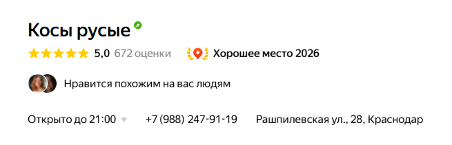 Входит в список 14-ти самых популярных салонов красоты Краснодара*