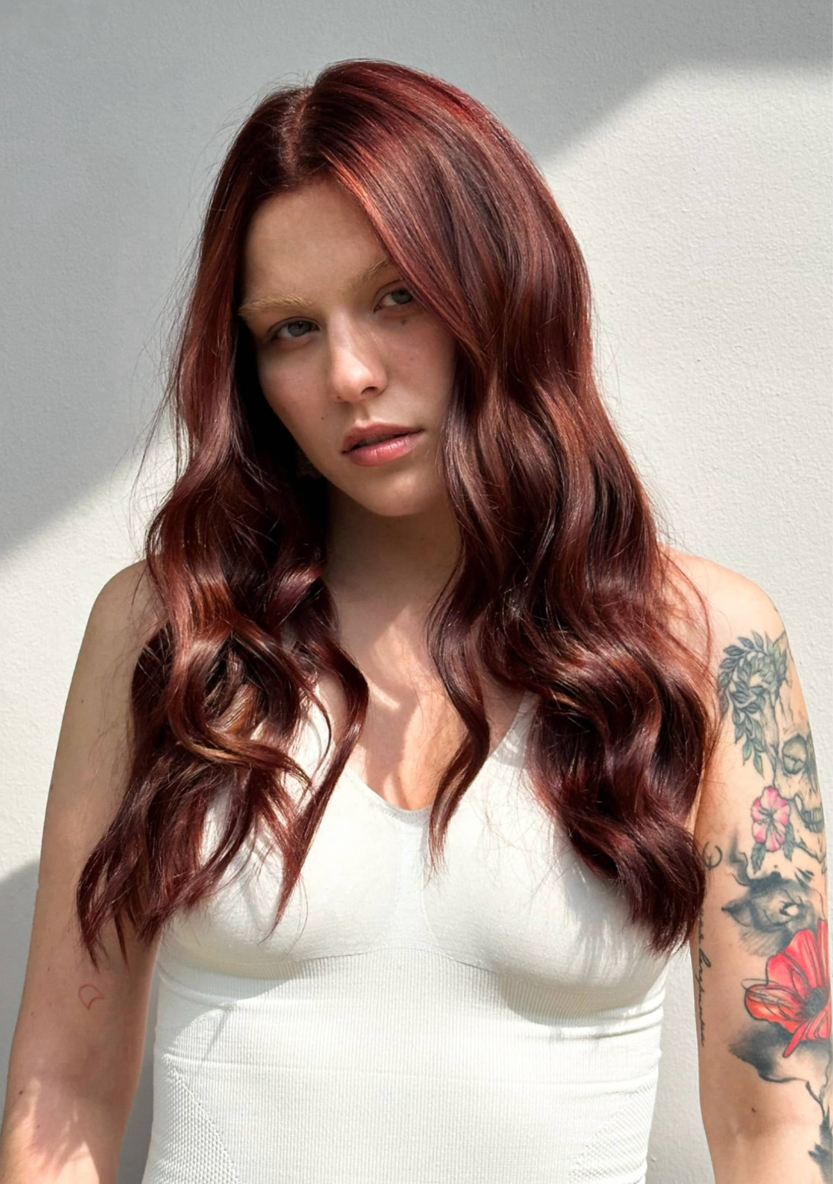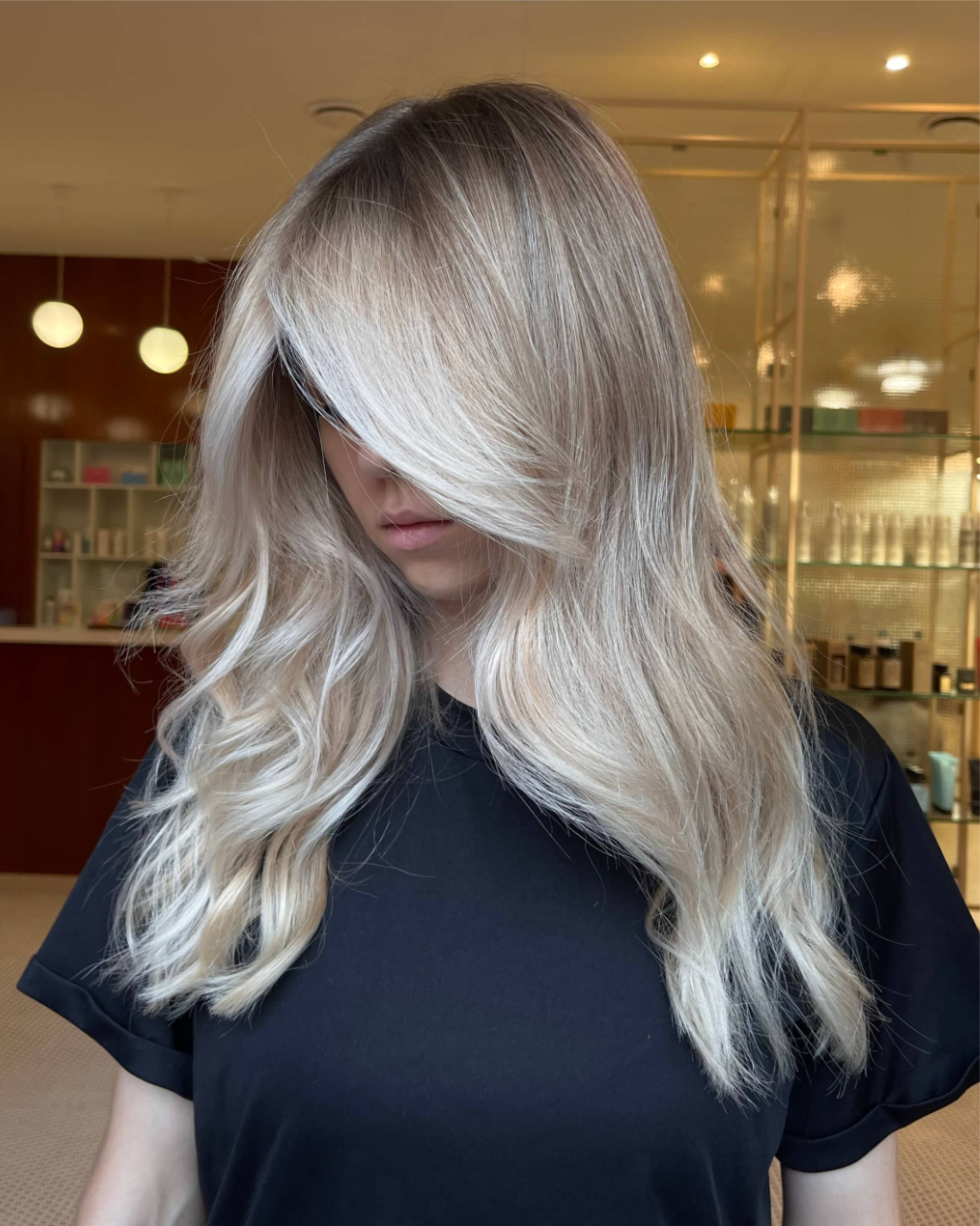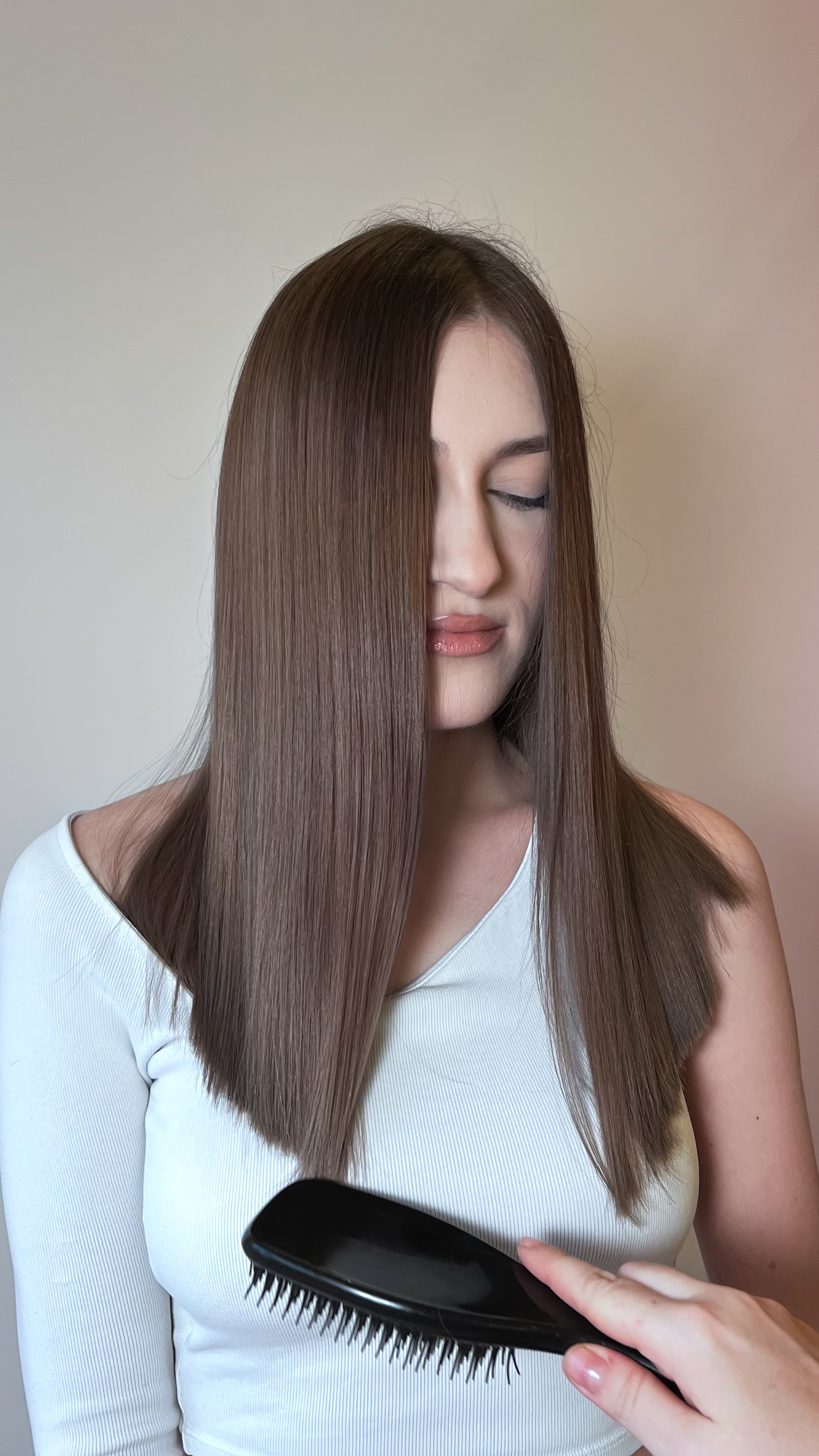 Без осветления, полное покрытие длины тон в тон, либо темнее. Закрашивание седины более стойким красителем. Также подойдет для тех, кому необходимо обновить цвет волос после осветления/сложного окрашивания