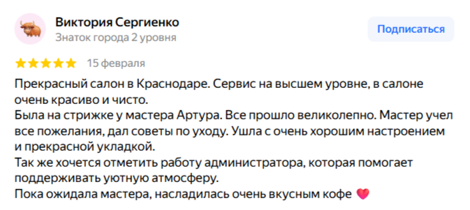 Входит в список 14-ти самых популярных салонов красоты Краснодара*